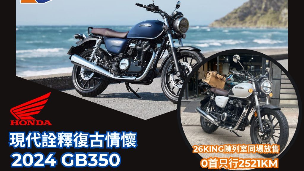 26KING陳列室現有一部0首2024 GB350放售,至今只行2521KM,全車已做檢查及打蠟清潔,更包括以下改裝: